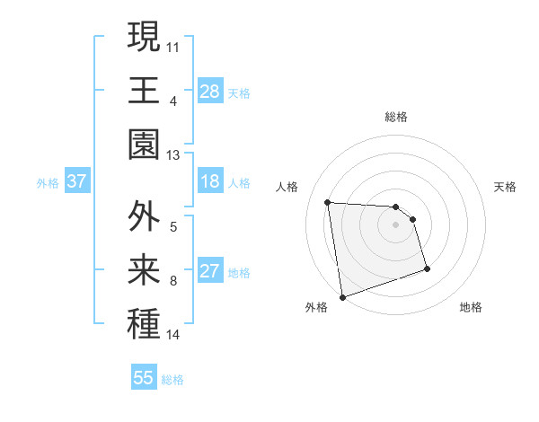 現王園 外来種さんを姓名の画数から五運を鑑定