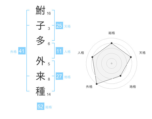鮒子多 外来種さんの総格は52画の4点