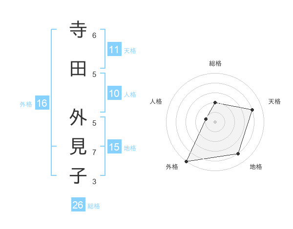 寺田 外見子さんを姓名の画数から五運を鑑定