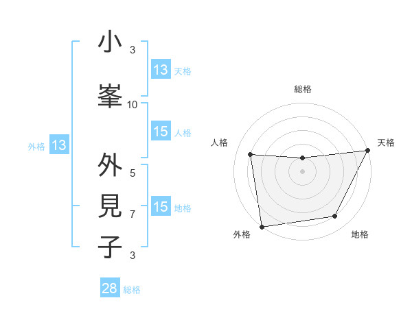 小峯 外見子さんを姓名の画数から五運を鑑定