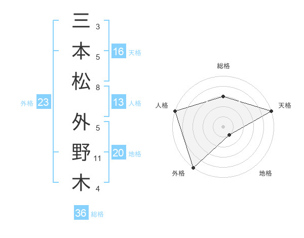 三本松 外野木さんの外格は23画の5点!