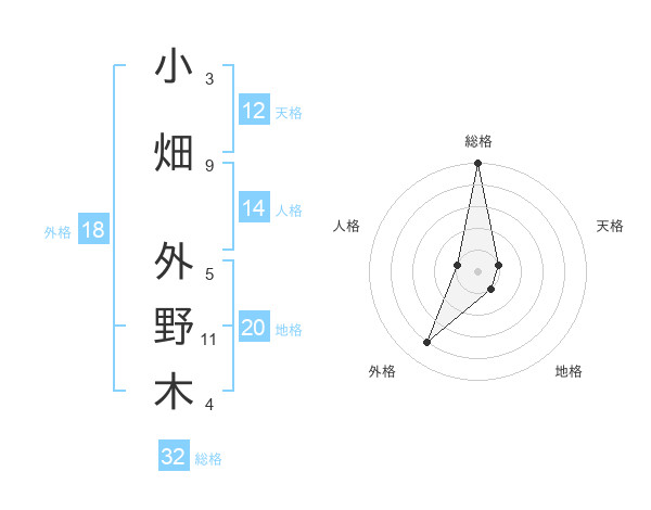 小畑 外野木さんの総格は32画の5点!