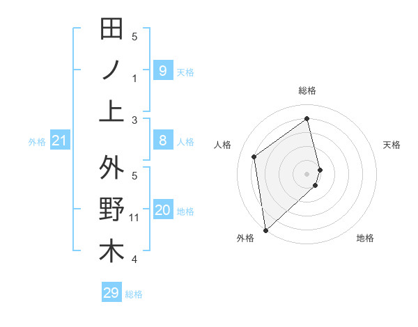 田ノ上 外野木さんを姓名の画数から五運を鑑定