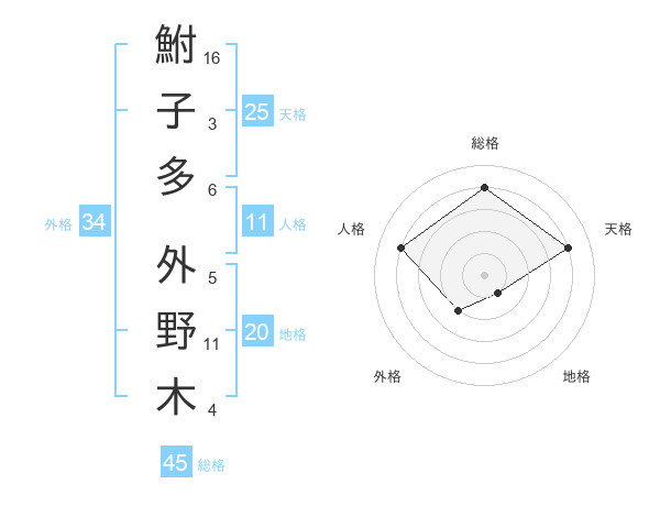 鮒子多 外野木さんを姓名の画数から五運を鑑定