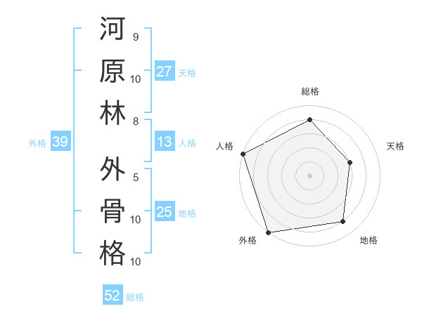 河原林 外骨格さんを姓名の画数から五運を鑑定