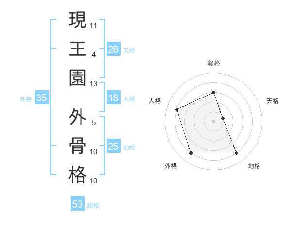 現王園 外骨格さんを姓名の画数から五運を鑑定