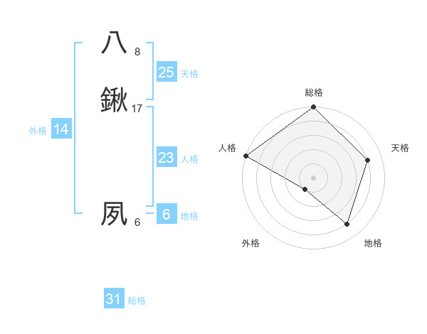 八鍬 夙さんを姓名の画数から五運を鑑定