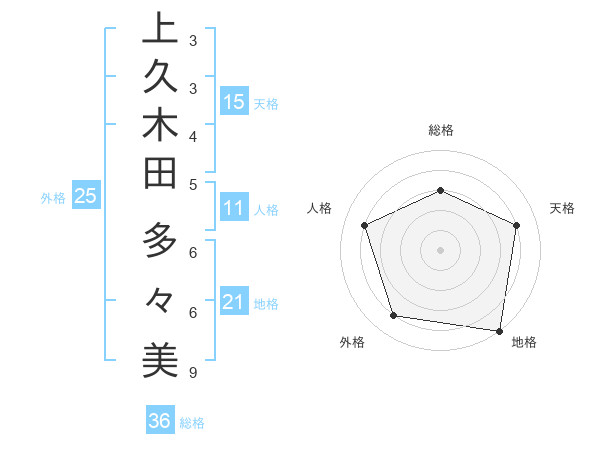上久木田 多々美さんの総格は36画の3点
