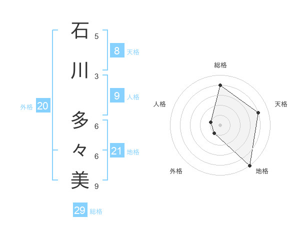 石川 多々美さんの総格は29画の4点!