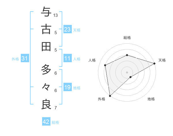 与古田 多々良さんを姓名の画数から五運を鑑定