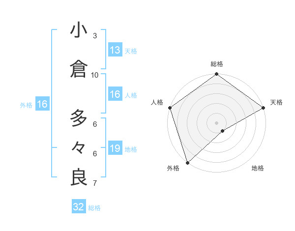 小倉 多々良さんの天格は13画の5点!