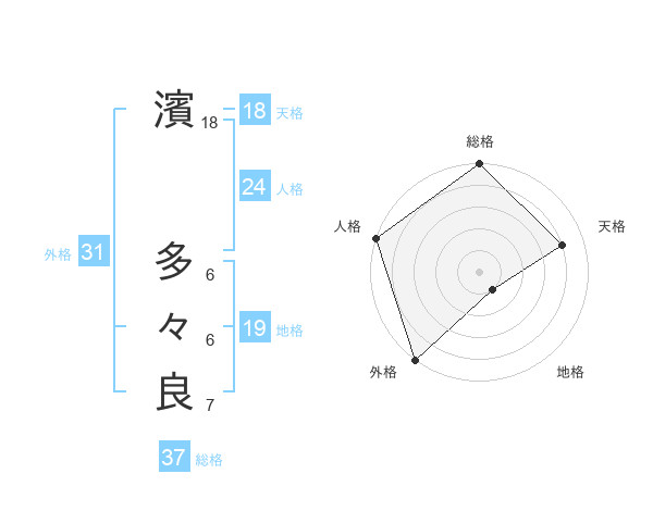 濱 多々良さんの総格は37画の5点