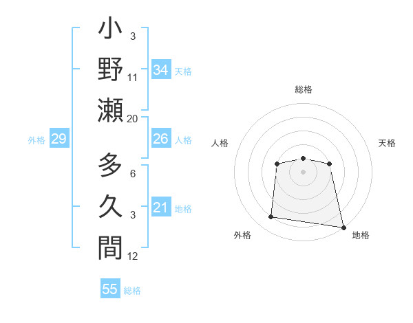 小野瀬 多久間さんを姓名の画数から五運を鑑定