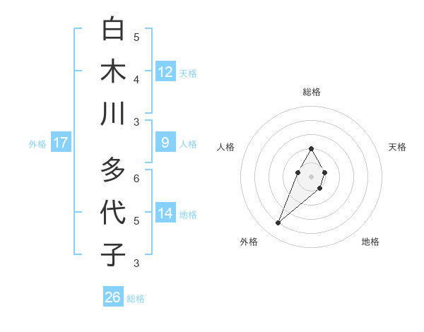 白木川 多代子さんの総格は26画の2点!