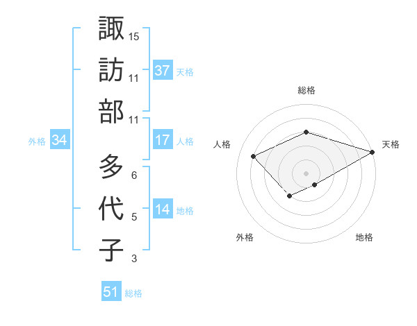 諏訪部 多代子さんの天格は37画の5点!