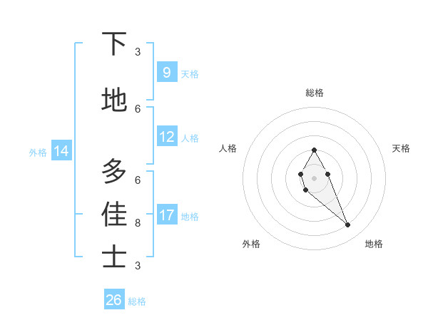下地 多佳士さんの総格は26画の2点!