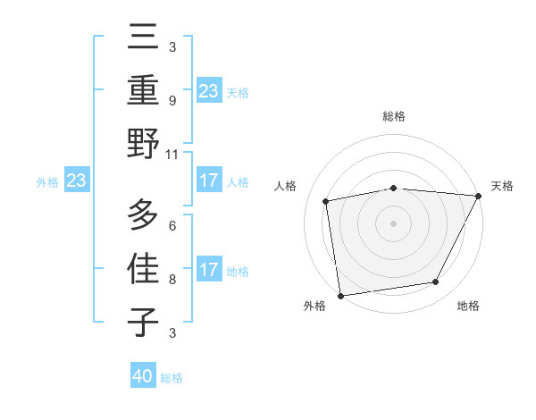 三重野 多佳子さんを姓名の画数から五運を鑑定