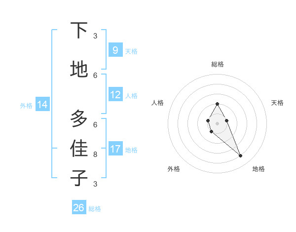 下地 多佳子さんを姓名の画数から五運を鑑定