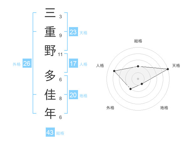 三重野 多佳年さんを姓名の画数から五運を鑑定
