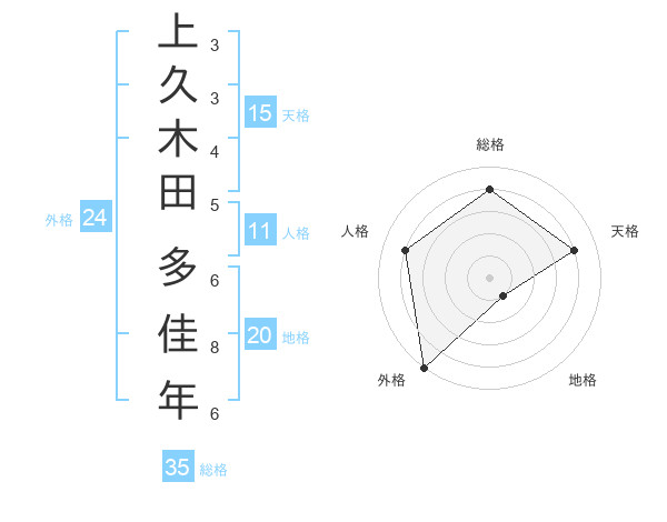 上久木田 多佳年さんを姓名の画数から五運を鑑定