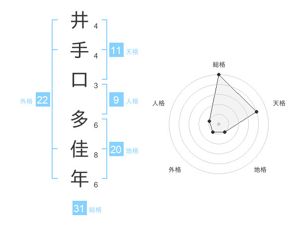 井手口 多佳年さんを姓名の画数から五運を鑑定