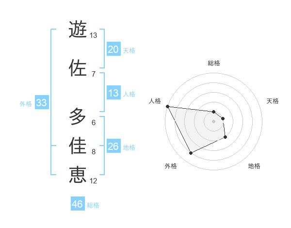 遊佐 多佳恵さんを姓名の画数から五運を鑑定