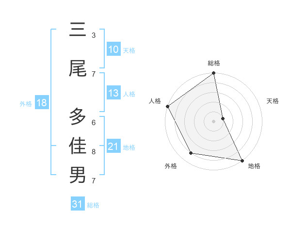 三尾 多佳男さんを姓名の画数から五運を鑑定