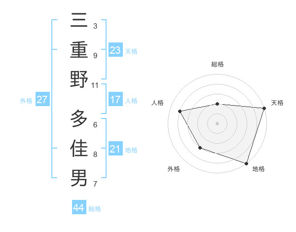 三重野 多佳男さんを姓名の画数から五運を鑑定