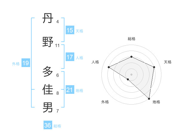 丹野 多佳男さんを姓名の画数から五運を鑑定