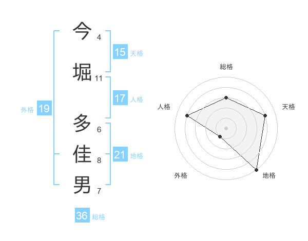 今堀 多佳男さんを姓名の画数から五運を鑑定