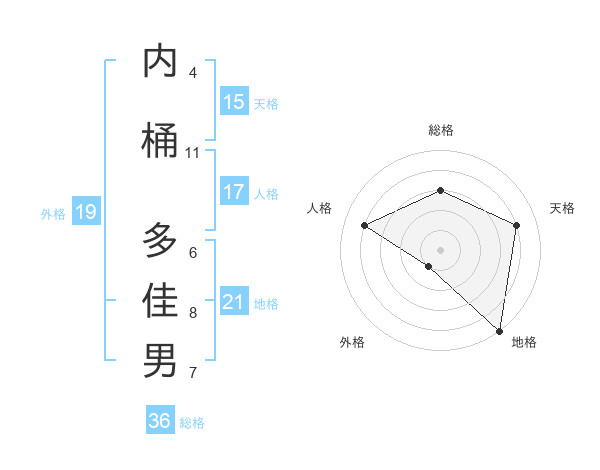 内桶 多佳男さんを姓名の画数から五運を鑑定