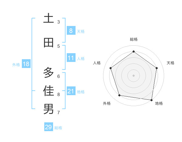 土田 多佳男さんを姓名の画数から五運を鑑定