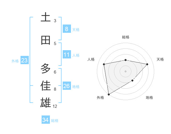 土田 多佳雄さんを姓名の画数から五運を鑑定