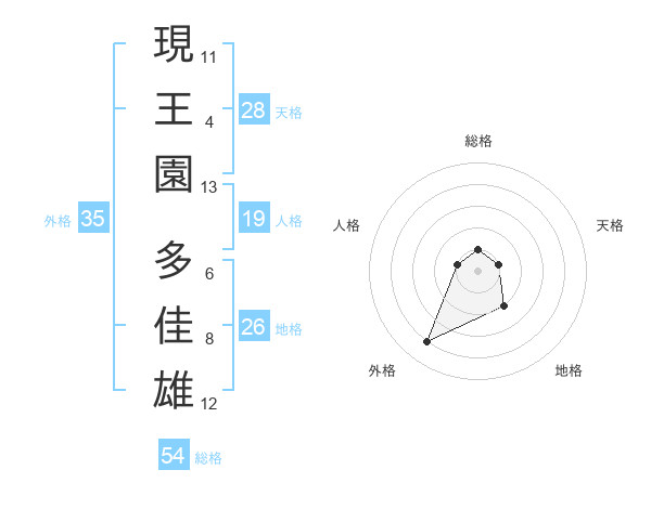 現王園 多佳雄さんを姓名の画数から五運を鑑定