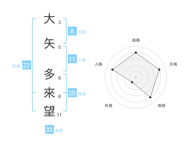 大矢 多來望さんを姓名の画数から五運を鑑定