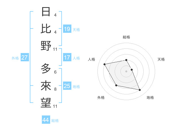 日比野 多來望さんを姓名の画数から五運を鑑定