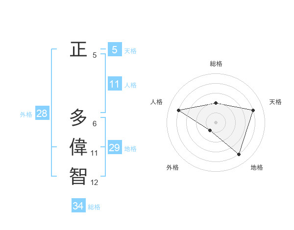 正 多偉智さんの外格は28画の1点!