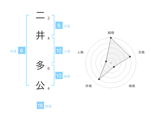 二井 多公さんの総格は16画の5点!