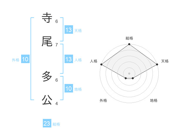 寺尾 多公さんを姓名の画数から五運を鑑定