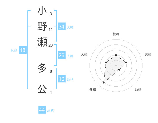 小野瀬 多公さんを姓名の画数から五運を鑑定