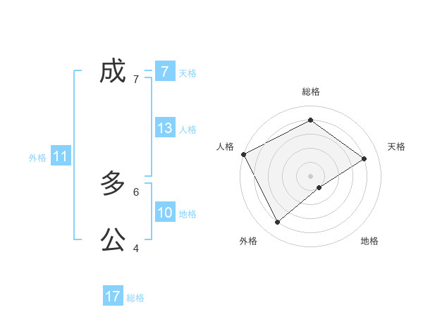 成 多公さんの総格は17画の4点!