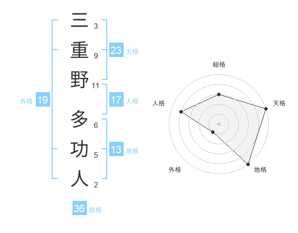 三重野 多功人さんの天格は23画の5点!