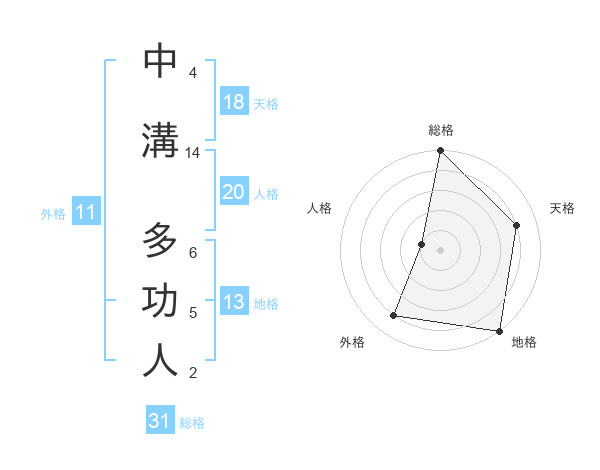 中溝 多功人さんの総格は31画の5点!