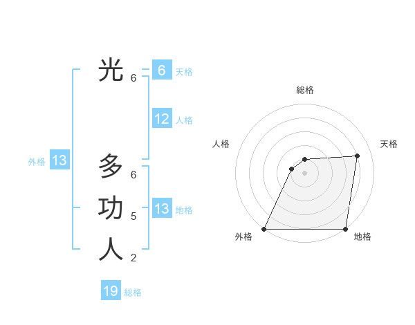 光 多功人さんの地格は13画の5点!