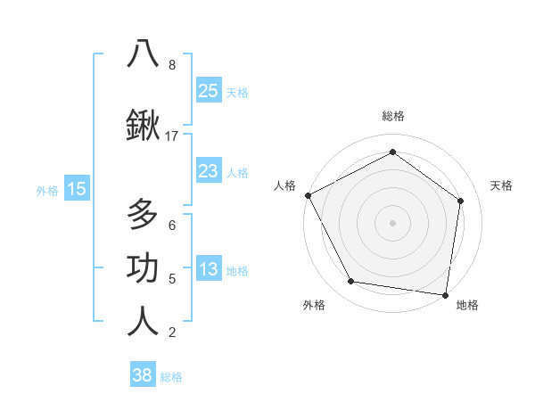 八鍬 多功人さんの総格は38画の4点!