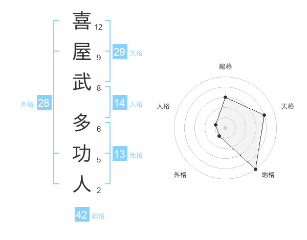 喜屋武 多功人さんの地格は13画の5点!