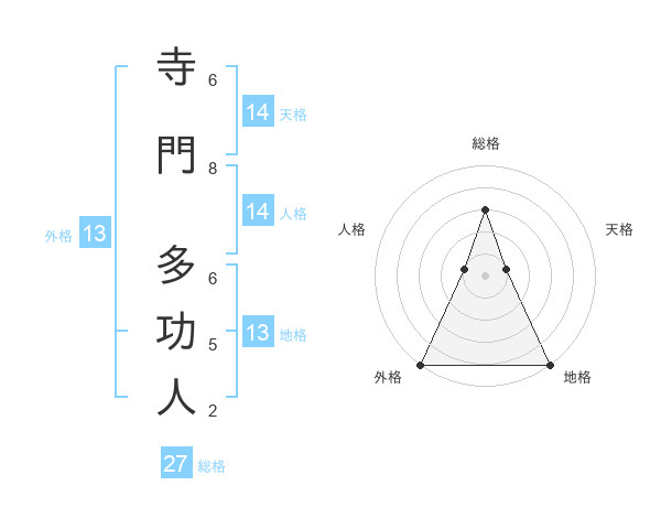 寺門 多功人さんの外格は13画の5点!