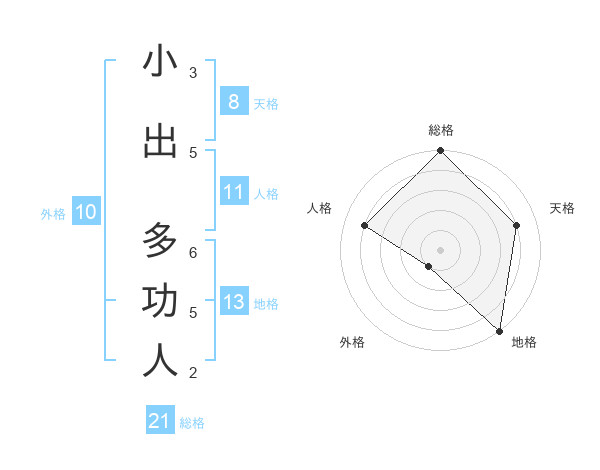 小出 多功人さんの地格は13画の5点!