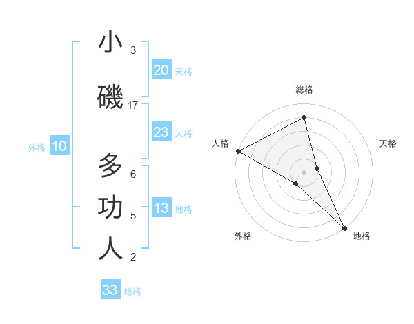 小磯 多功人さんを姓名の画数から五運を鑑定