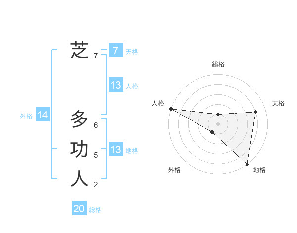 芝 多功人さんの地格は13画の5点!